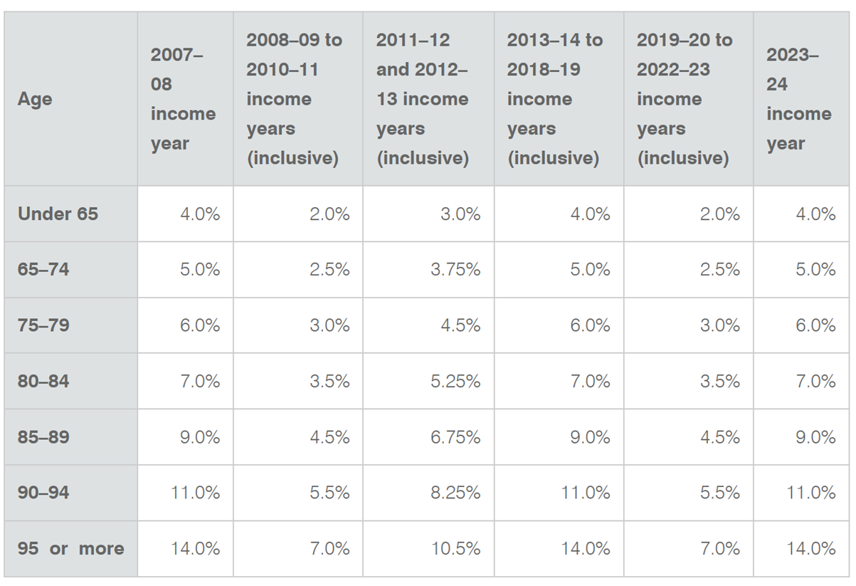 For the last four financial years, the minimum drawdown rate has been significantly discounted from the 2018-19 rates.