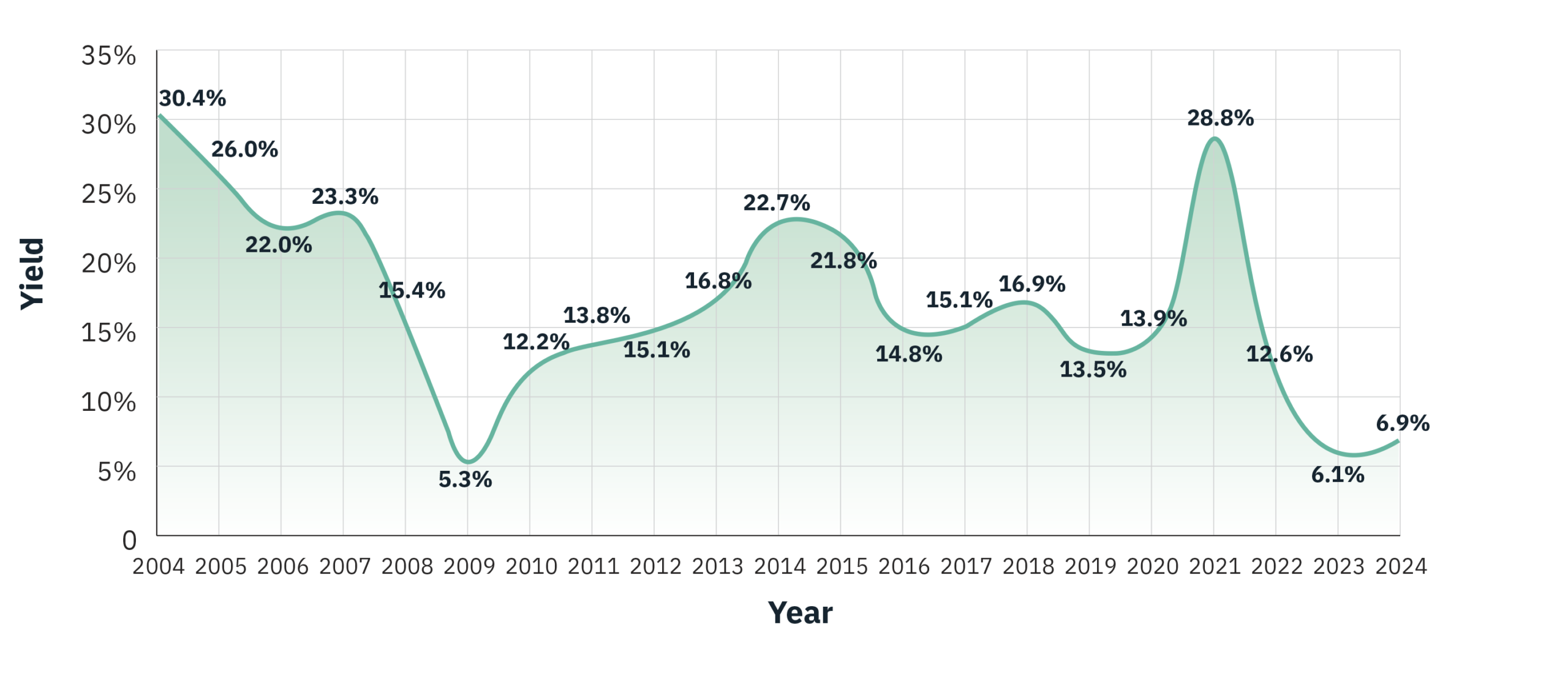 In recent years however, the industry has suffered a hangover of sorts since the peak of the VC cycle in late 2021. Fundraising has slowed significantly as investors, who had allocated healthily during those boom times, have reduced their future allocations or simply sat on the sidelines waiting for distributions / capital returns, much of which is yet to flow through to investors due to (in part) more challenging exit conditions for Fund investments.