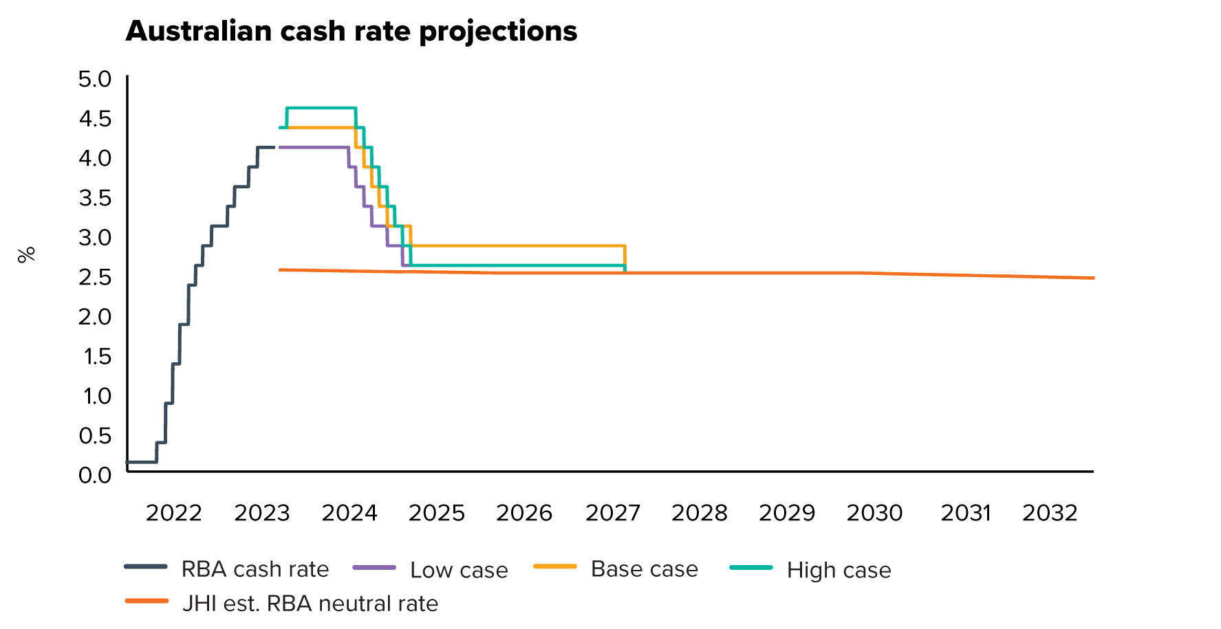 Many leading indicators such as inverted yield curves, tightening bank lending standards, slowing of mortgage applications, and weakening labour markets have historically been precedents for a recession in several countries and will weigh on rate projections priced into the bond market. The below chart displays the cash rate projections for Australia which points towards a normalisation of rates in the near future. It is therefore essential to consider such dynamics when constructing a cash allocation within an investment portfolio.