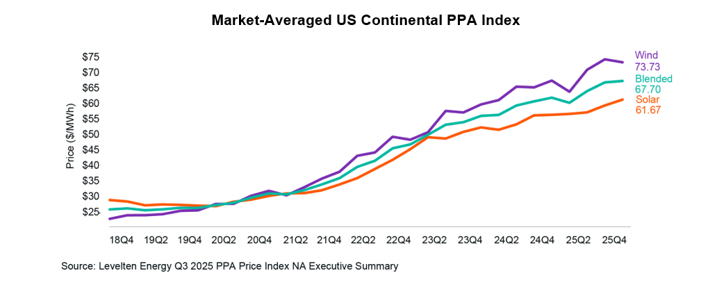 One consequence of the boom in AI interest has been a surge in electricity demand which has been outpacing the degree to which supply can be brought on board. Purchasing Power Agreements (PPAs), long-term contracts between energy suppliers and customers at a pre-determined price, have surged in value as tech companies look to lock in power for their datacentre investments. This surge has triggered continued growth in renewable energy investment within the US despite the less-friendly stance of the current Administration towards the sector.